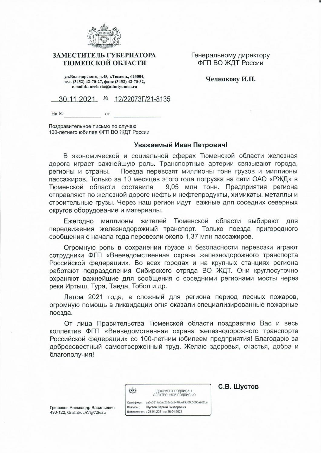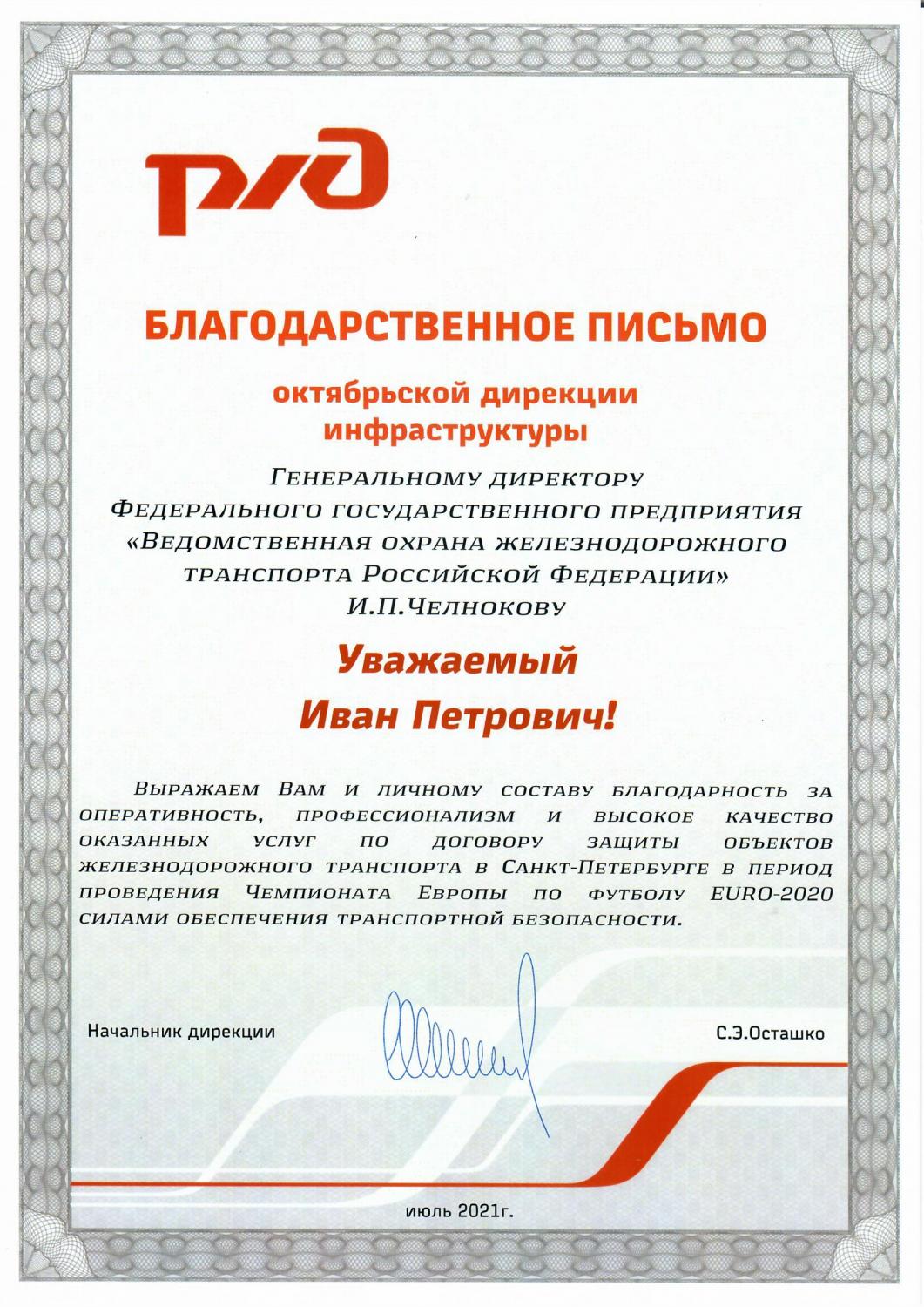 Благодарность РЖД