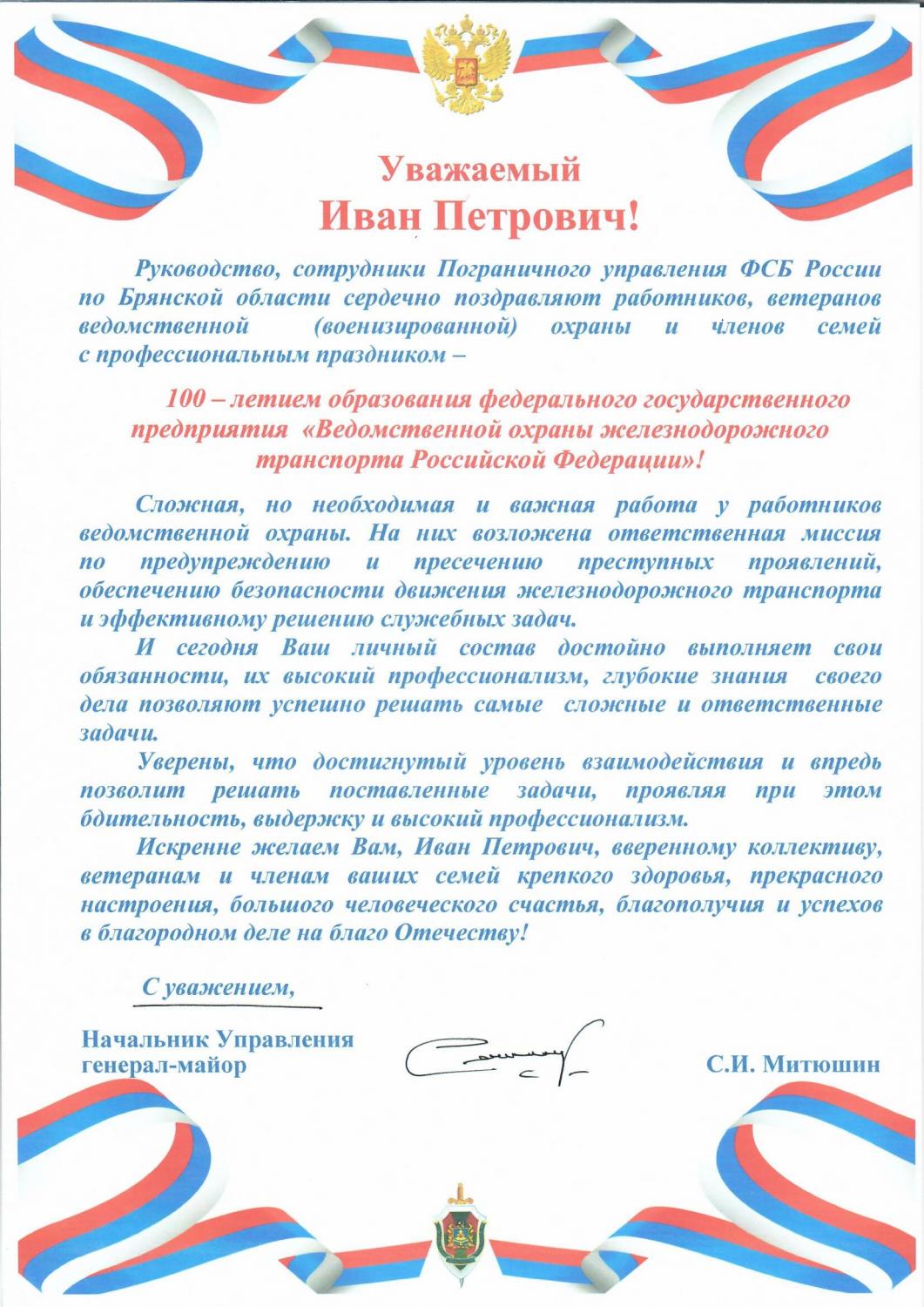 Поздравление ФСБ Брянск